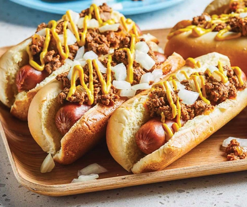 Served with grilled onion, lettuce, pickles, tomato, American cheese, ketchup and mayo.